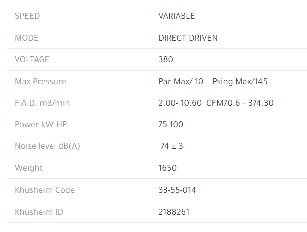 Power System V60MB97PWS180 SCREW COMPRESSOR, 75KW/100HP